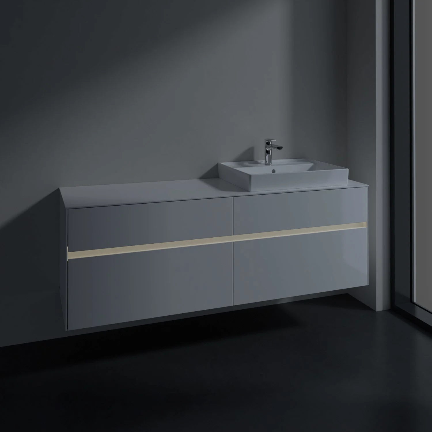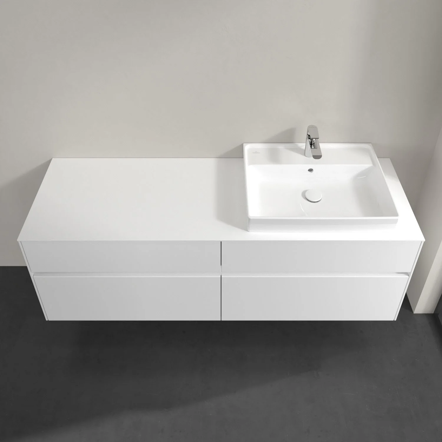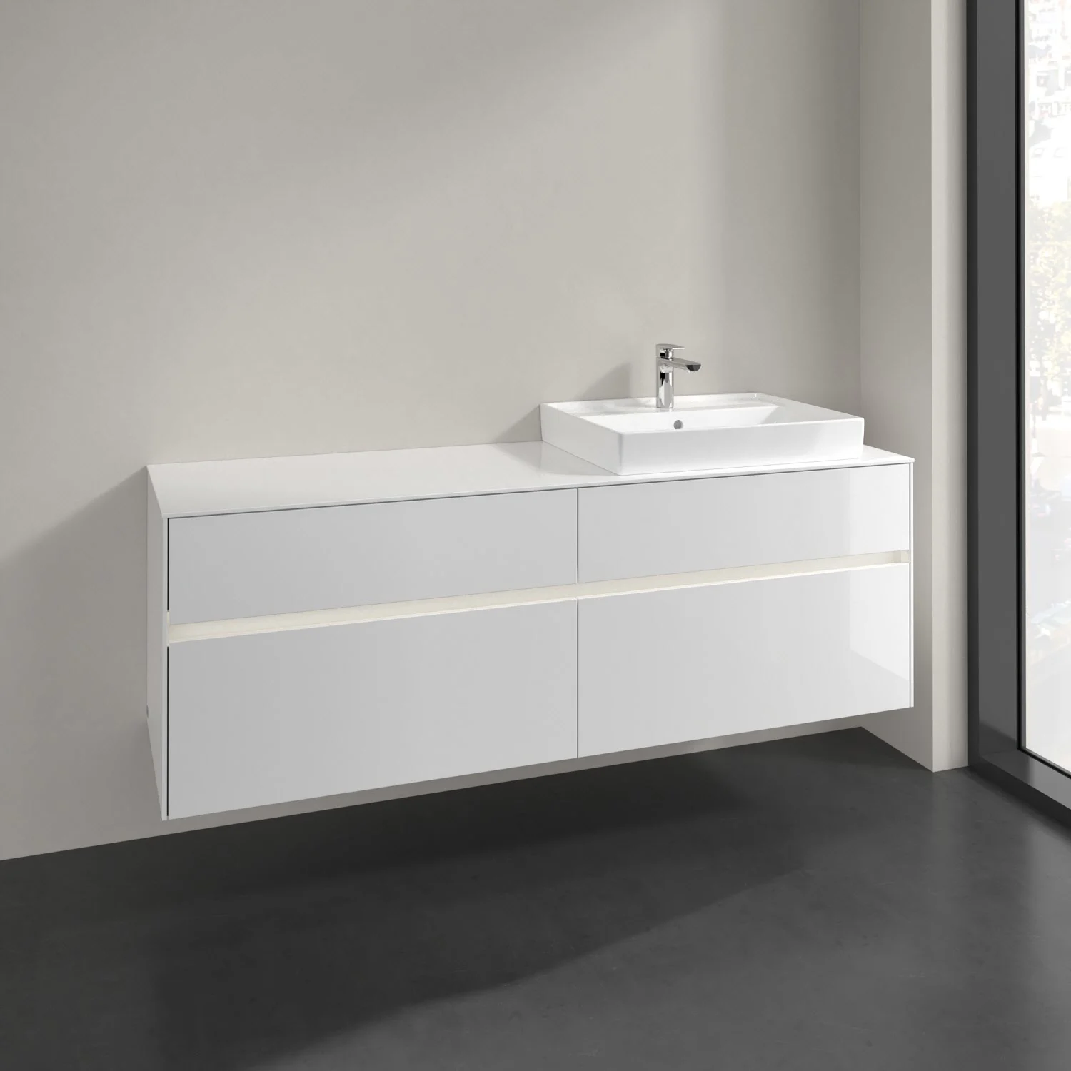 Villeroy & Boch Collaro Waschtischunterschrank 160 x 54,8 cm mit 4 Auszügen und LED Licht, für WT rechts