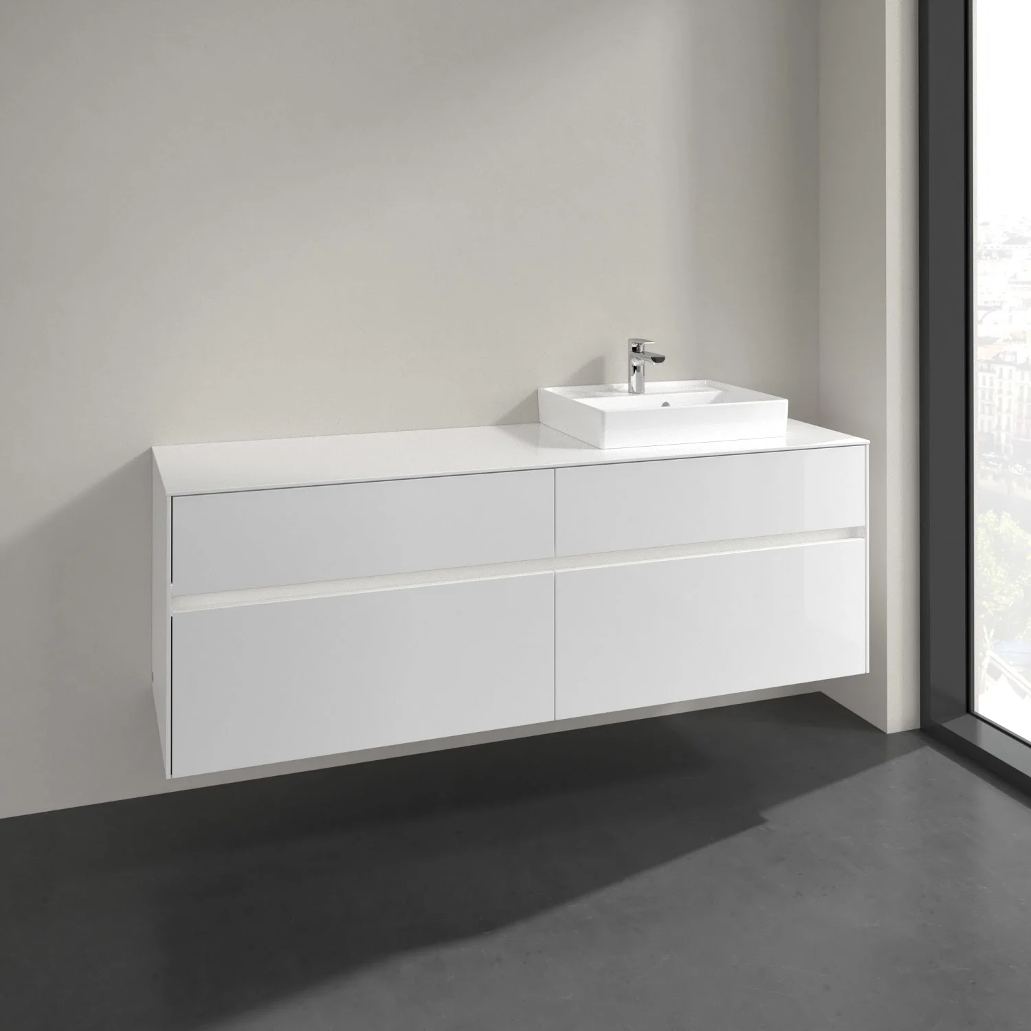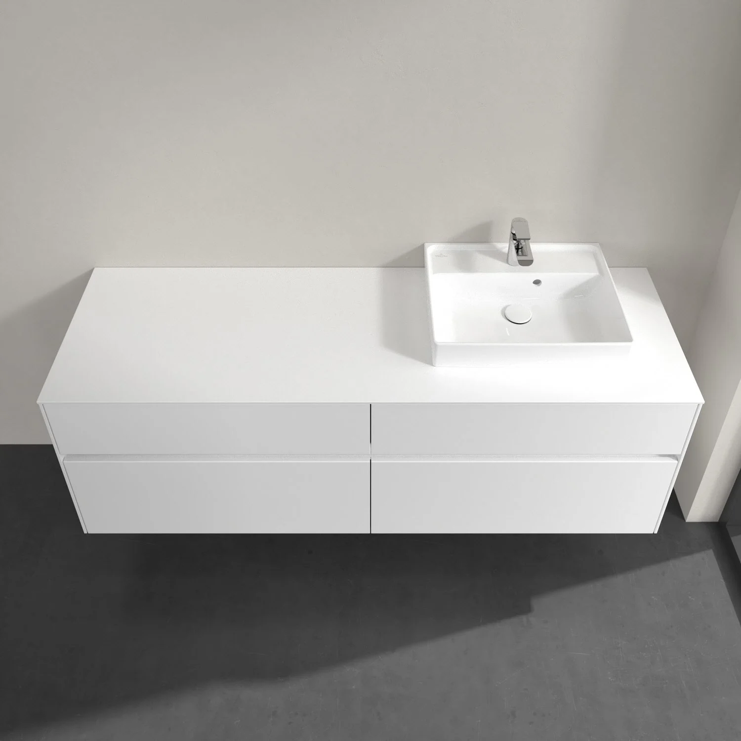 Villeroy & Boch Collaro Waschtischunterschrank 160 x 54,8 cm mit 4 Auszügen und LED Licht, für WT rechts