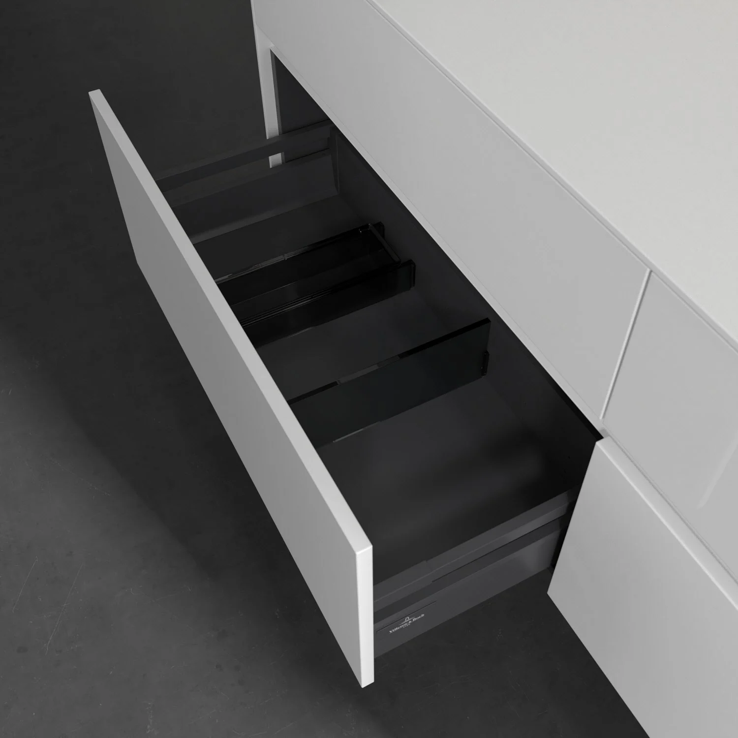 - kein Umfallen oder Verrutschen von Pflegeprodukten in den Schubladen dank rutschhemmendem Boden