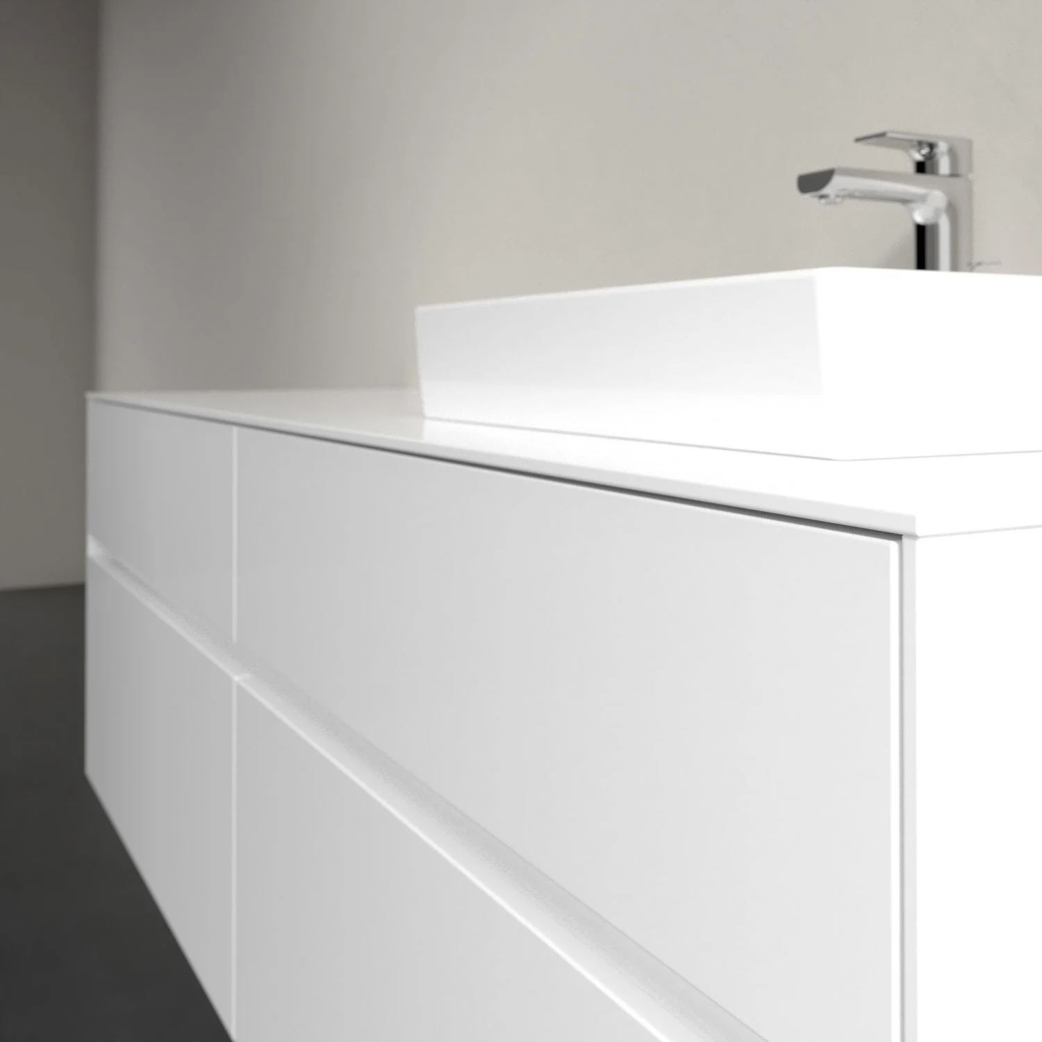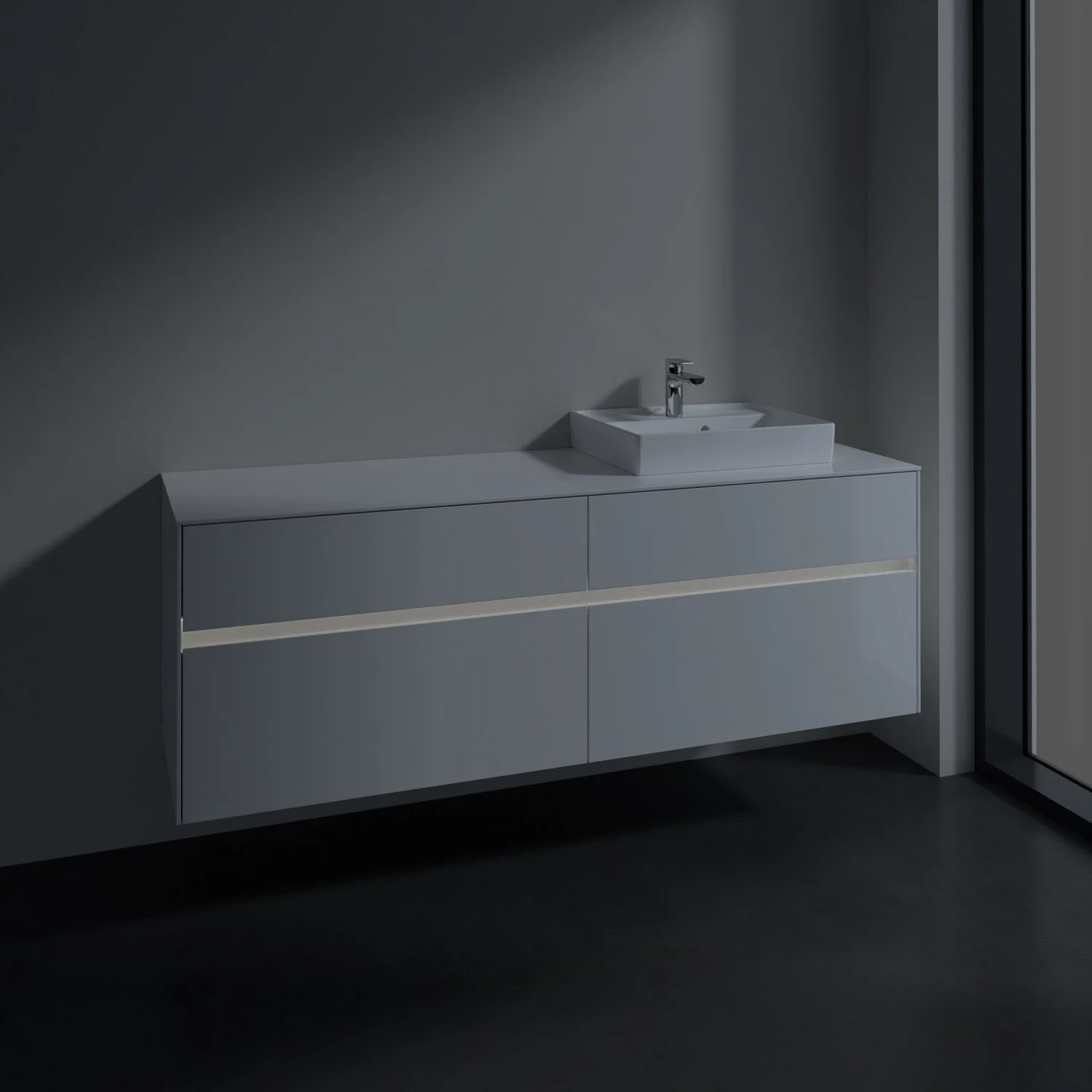 Stauraumwunder im zeitgemäßen Design: Der Villeroy & Boch Waschbeckenunterschrank aus der Collaro Kollektion eignet sich besonders für Familienbäder und bietet genau den Platz, der dort benötigt wird. Eine Griffleiste mit integrierter, stufenlos einstellbarer LED-Beleuchtung sorgt für eine schlichte, stimmungsvolle Front. Steuern lässt sich das Licht über einen Touch-Sensor seitlich am Unterschrank. Im Inneren bietet das Möbelstück mit vier Auszügen erstaunlich viel Komfort – ermöglicht durch großzügiges Platzangebot und integrierte Antirutschmatten. Variabel setzbare Glasabtrennungen und mitgelieferte Accessory Boxen sorgen für den nötigen Überblick. Dank SoftClosing und Selbsteinzug lassen sich die Auszüge nach der Nutzung lautlos schließen.