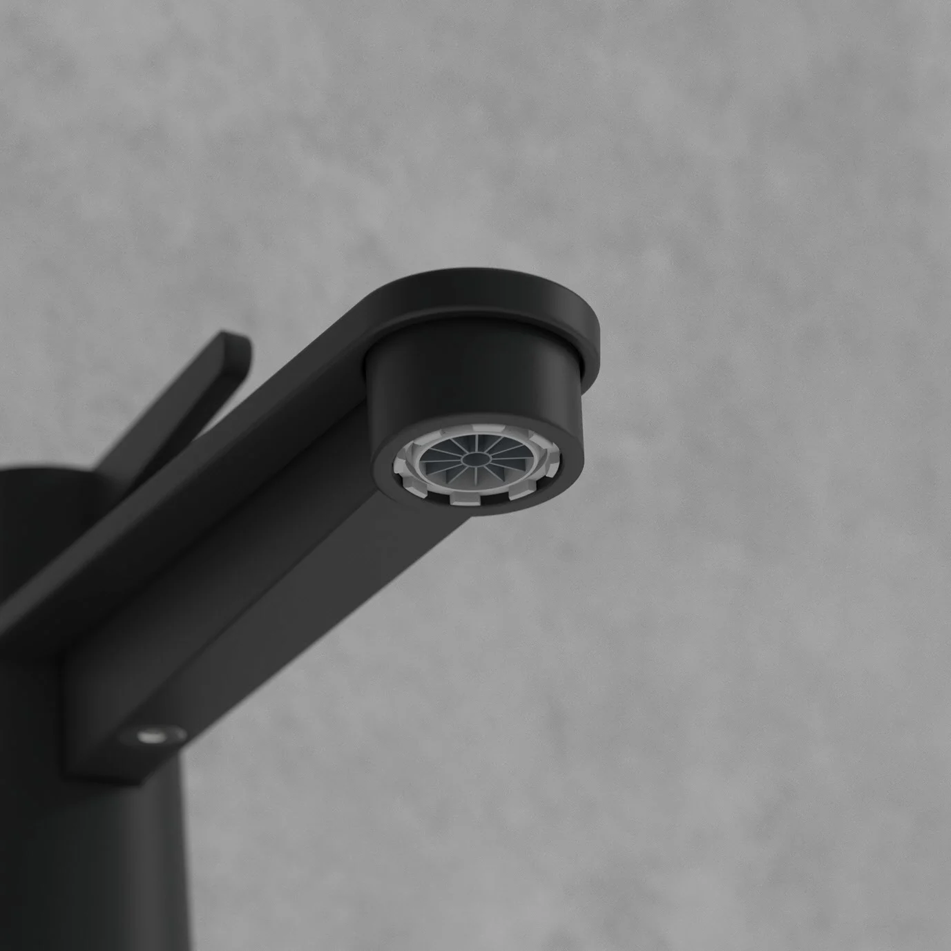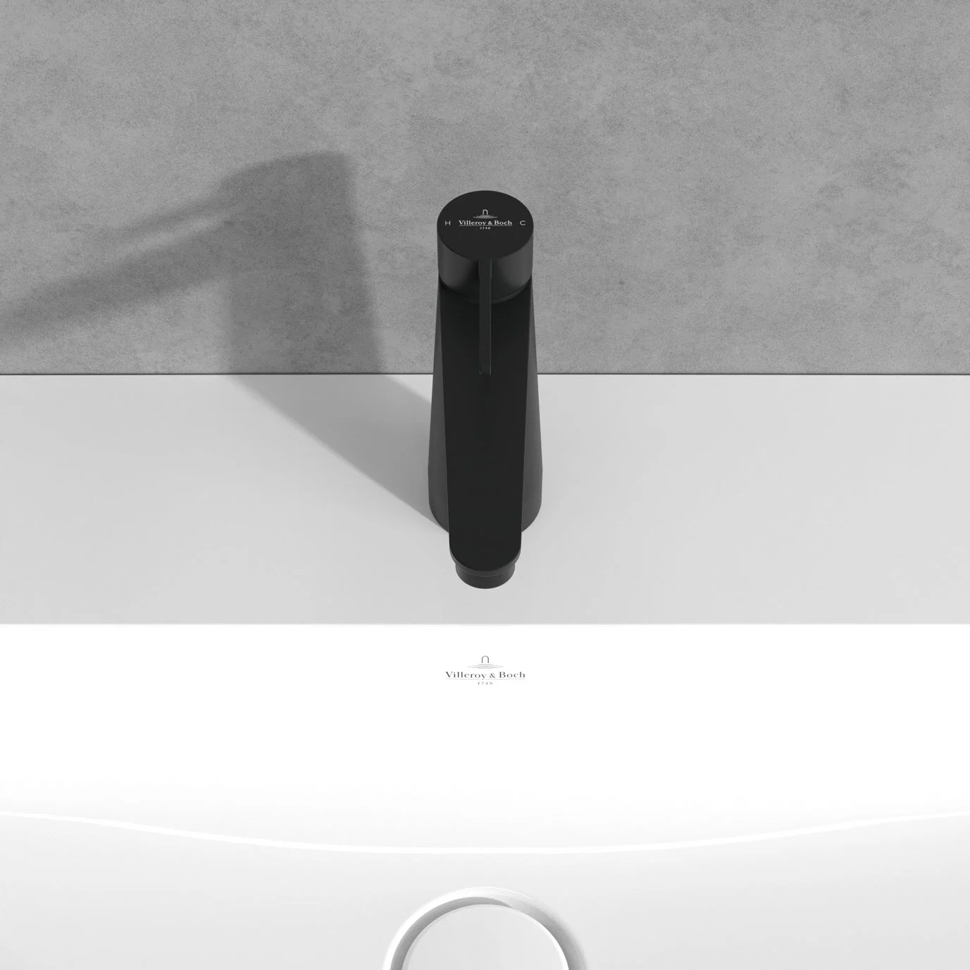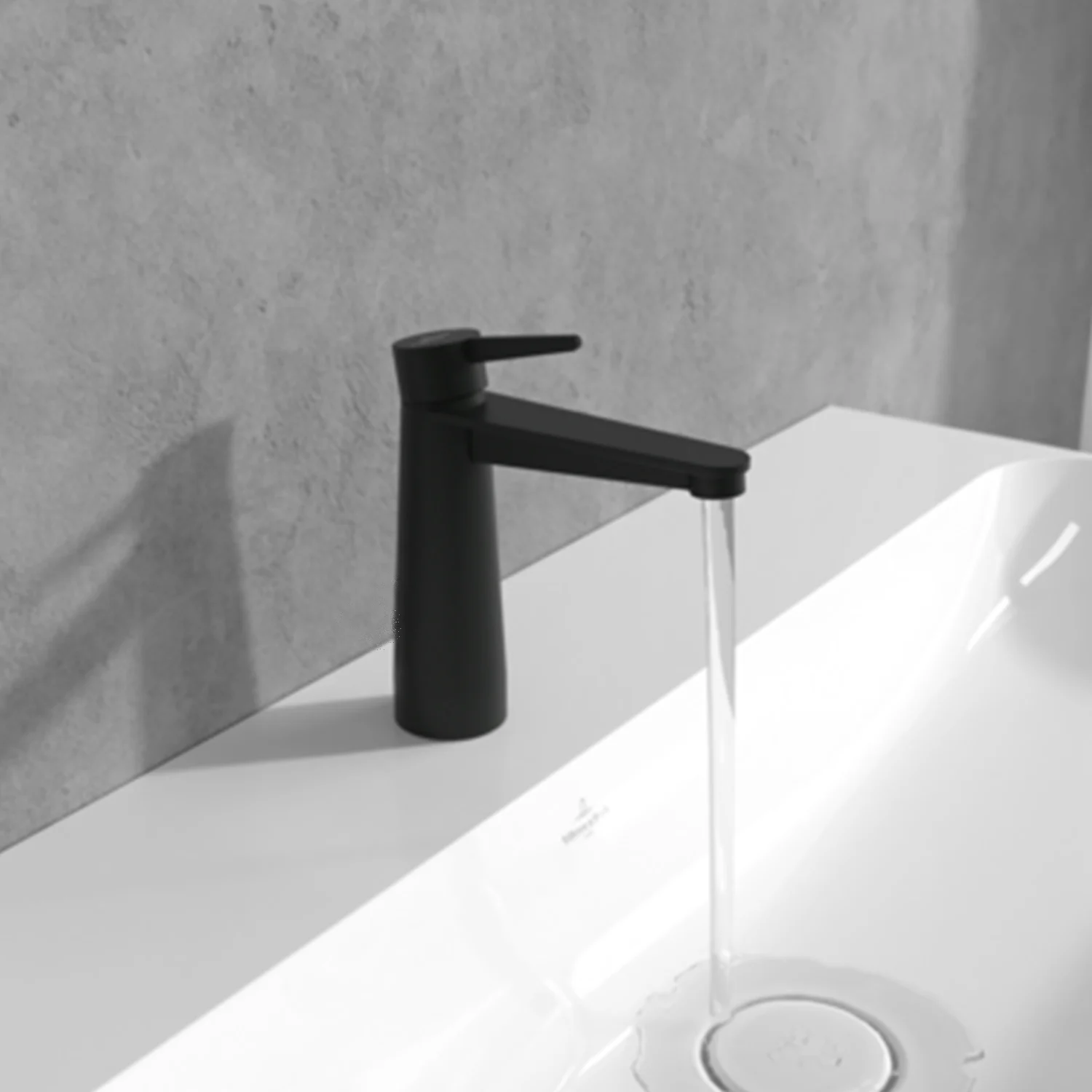 Die Conum Einhebel-Waschtischarmatur von Villeroy & Boch: Ihre konische Formensprache besticht durch eine dynamische Eleganz, die jeden Tag aufsNeue fasziniert und dem Waschplatz einen einzigartigen Charakter verleiht. So präzise und kompromisslos wie das Designist auch die Verarbeitungsqualität, die höchste Standards repräsentiert. Der Hebel der Armatur aus hochwertigem Messing gleitet beim Öffnen sanft und liegt daher besonders gut in der Hand. Der innovativen Laminarstrahl wird nicht mit Luft vermischt. So ist er kristallklar, besonders leise und vermeidet unangenehme Wasserspritzer beim Händewaschen. Gleichzeitig bietet die Armatur eine umweltfreundliche Wasserbegrenzung auf maximal 5 l/min – ganz ohne Leistungsverlust.