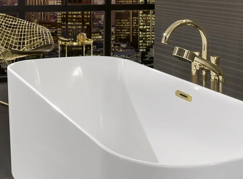 Villeroy & Boch Finion freistehende Badewanne 170 x 70 cm mit Design-Ring, Emotion-Funktion, Wasserzulauf
