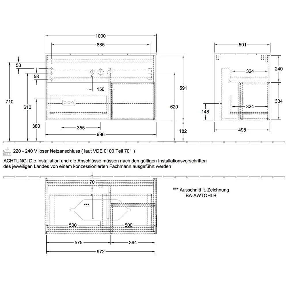 Villeroy & Boch Finion Waschtischunterschrank 100 cm mit Regalelement rechts, Abdeckplatte
