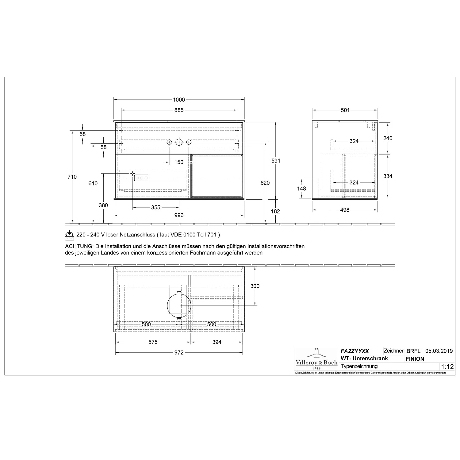 Villeroy & Boch Finion Waschtischunterschrank 100 cm mit Regalelement rechts, Abdeckplatte