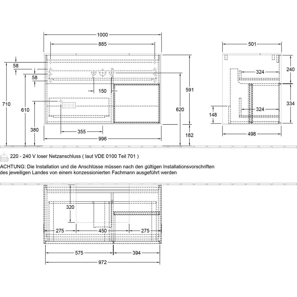 Villeroy & Boch Finion Waschtischunterschrank 100 cm mit Regalelement rechts und Abdeckplatte