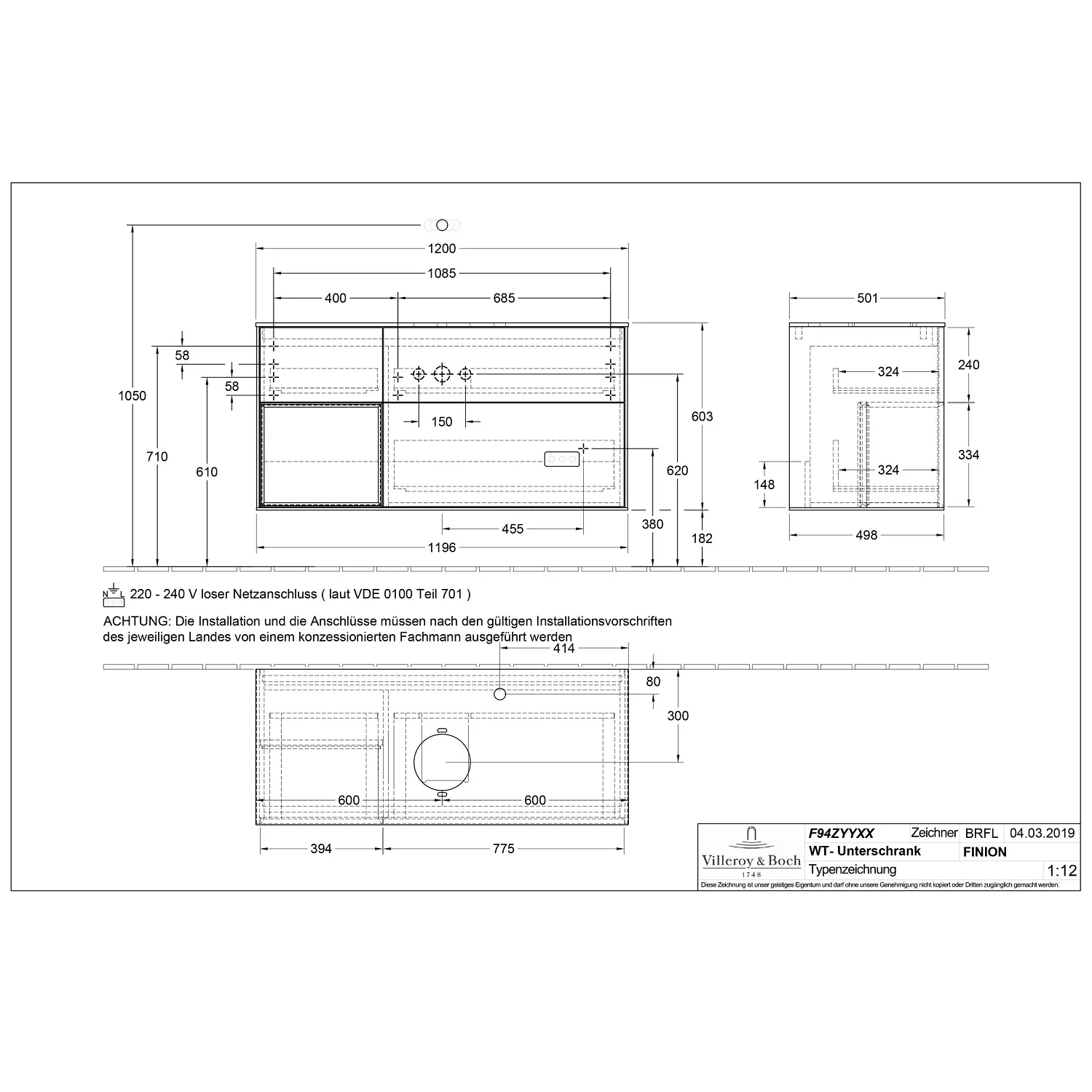 Villeroy & Boch Finion Waschtischunterschrank 120 cm mit Regalelement links, Abdeckplatte