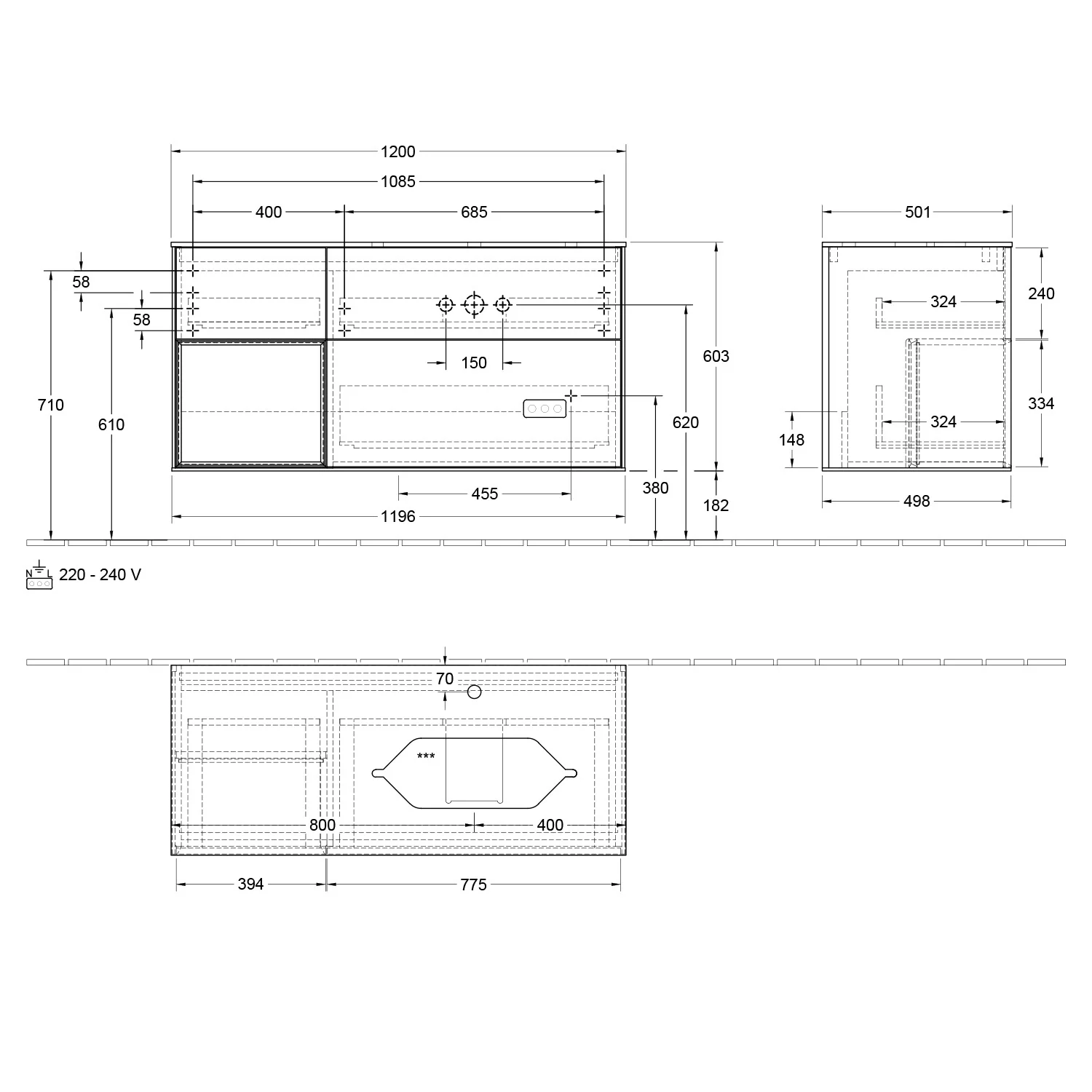 Definierte Waschbecken bitte separat bestellen (ein Beispiel finden Sie im Zubehör).