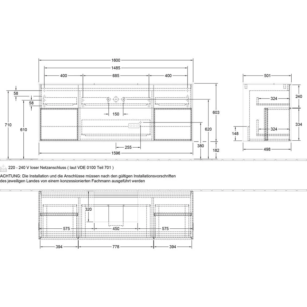 Villeroy & Boch Finion Waschtischunterschrank 160 cm mit 2 Regalelementen, Abdeckplatte