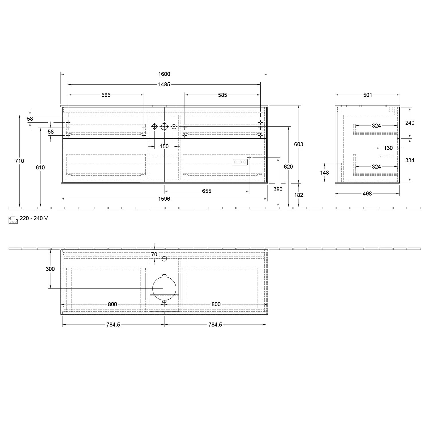 Villeroy & Boch Finion Waschtischunterschrank 160 cm mit Abdeckplatte und LED Wandbeleuchtung