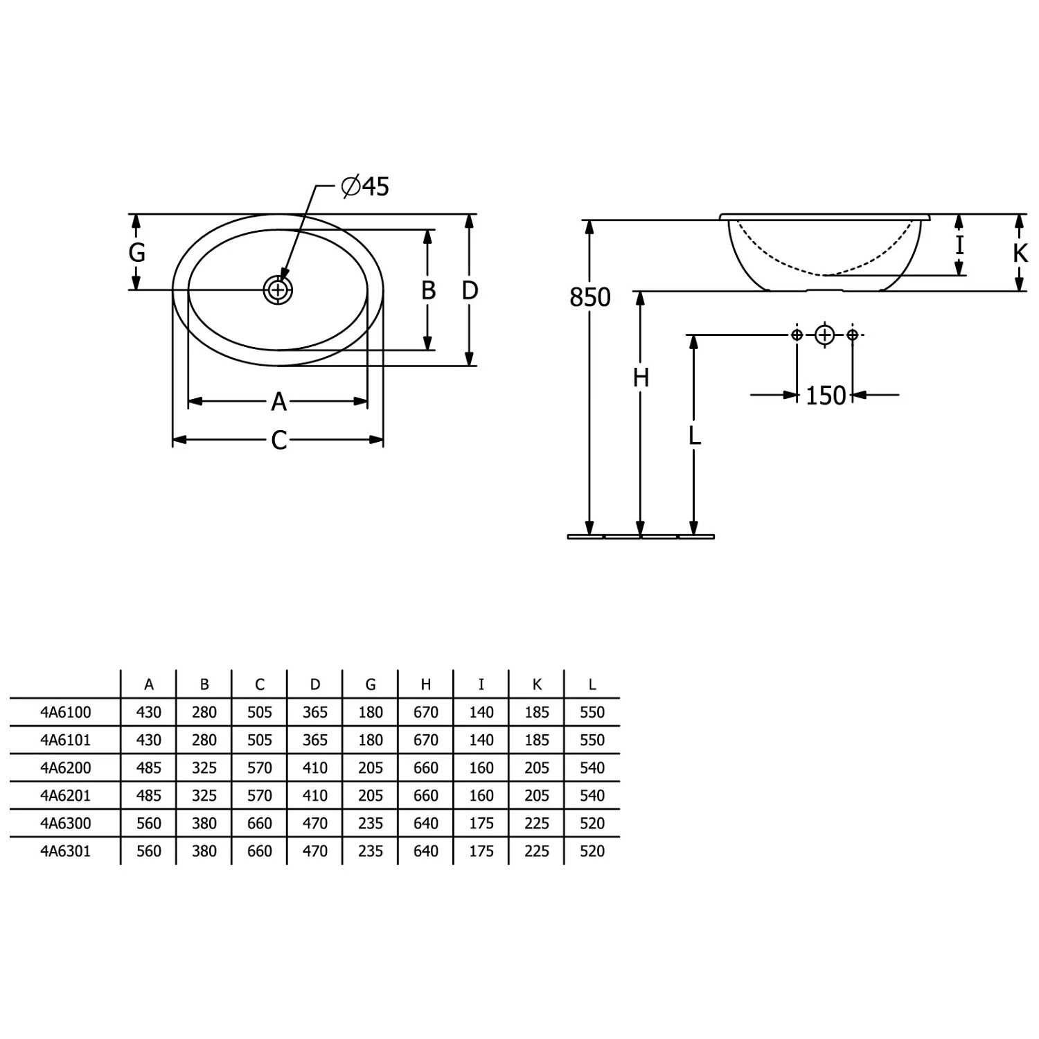 Villeroy & Boch Loop & Friends Einbauwaschbecken oval 66 x 47 cm, mit Überlauf
