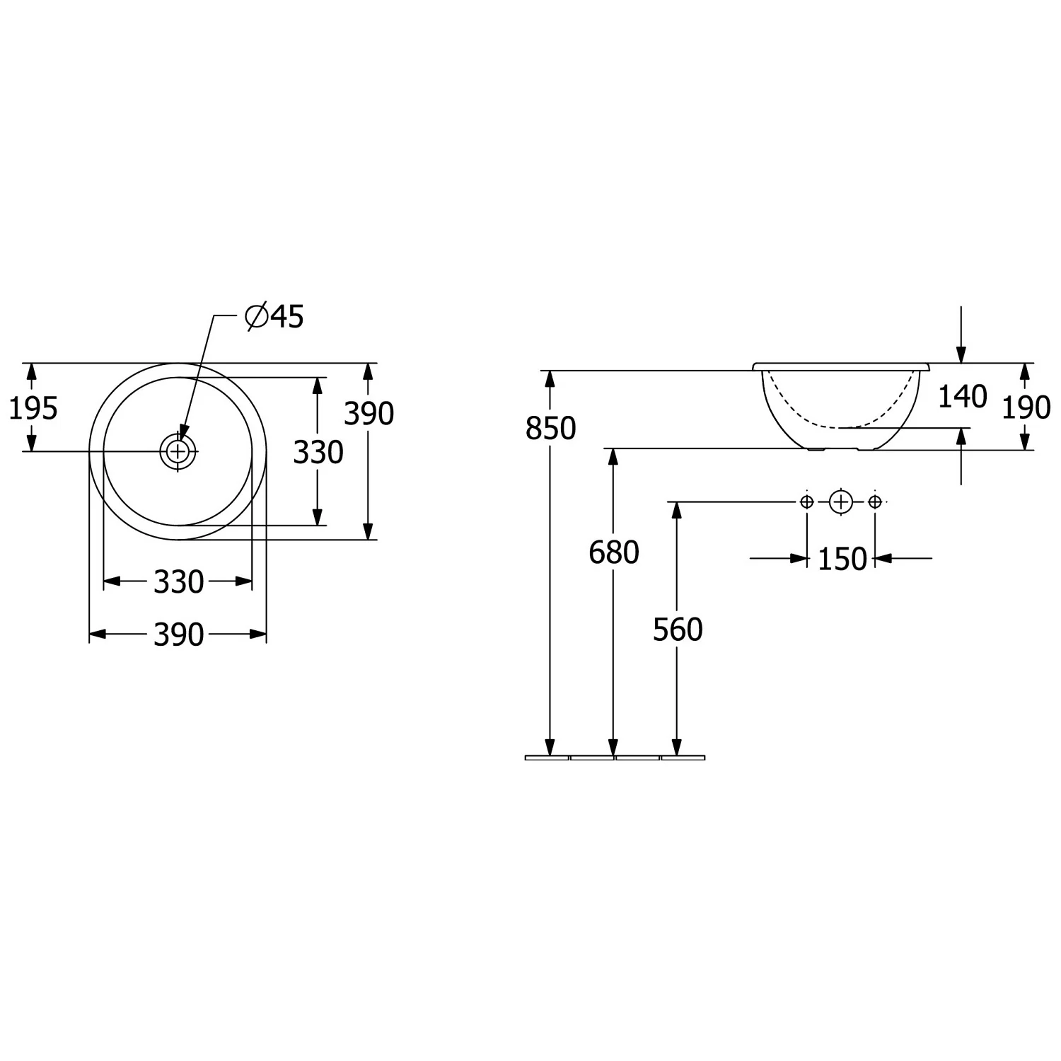 Villeroy & Boch Loop & Friends Einbauwaschbecken rund Ø 39 cm, ohne Überlauf