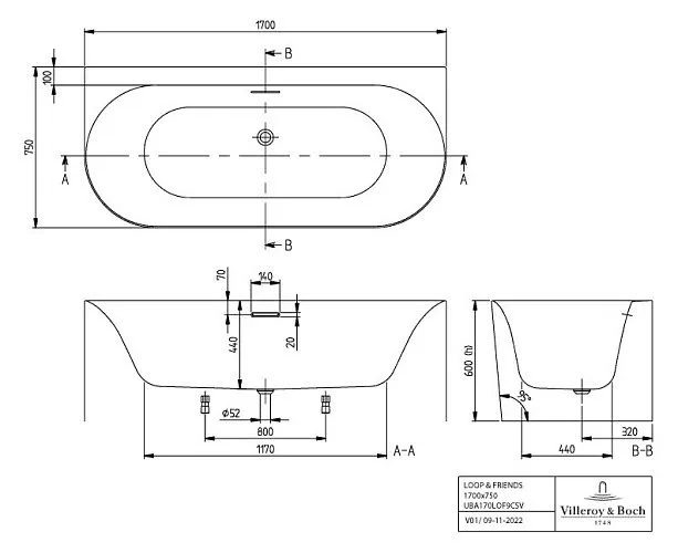 Villeroy & Boch Loop & Friends Oval Duo Vorwand-Badewanne, 170 x 75 cm