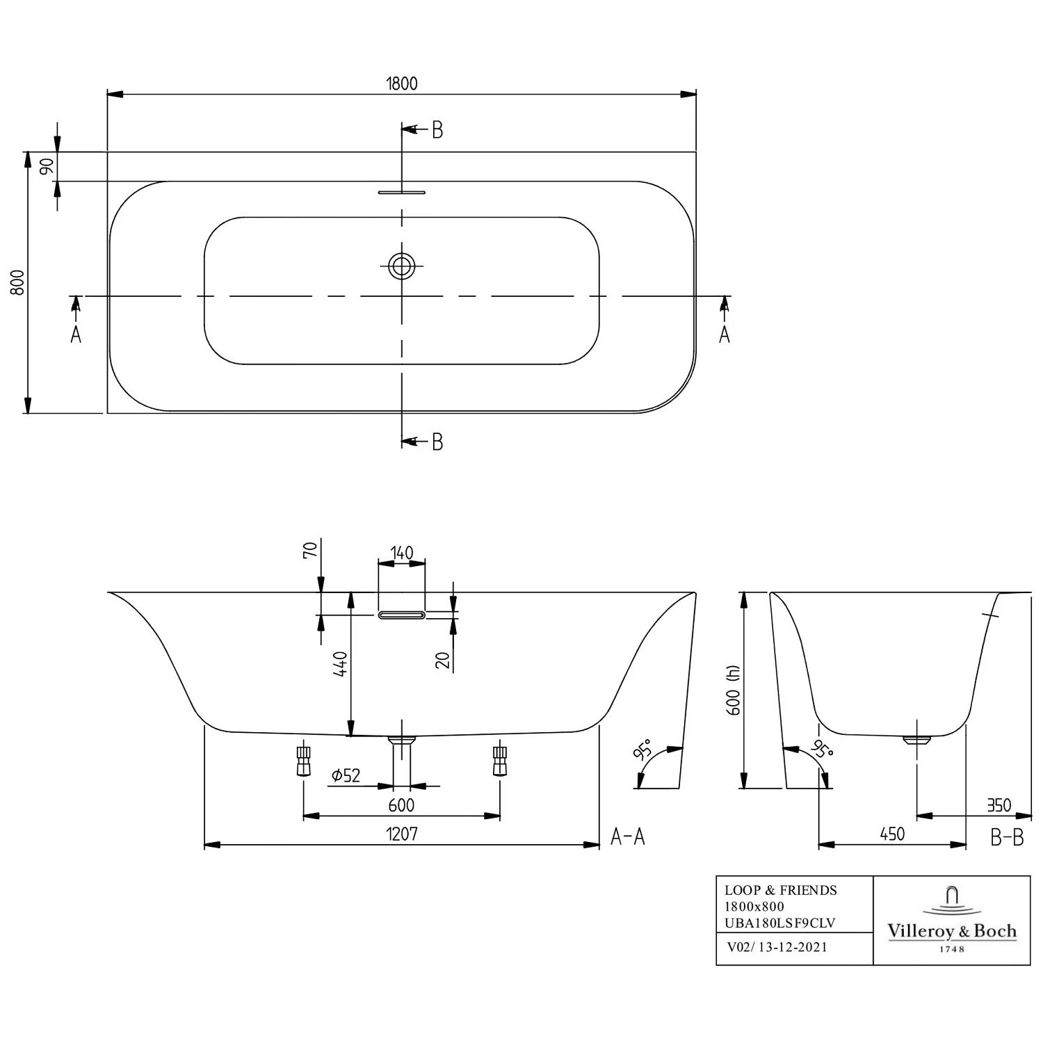 Villeroy & Boch Loop & Friends SQUARE Duo Vorwand-Badewanne, 180 x 80 cm für Eckeinbau links