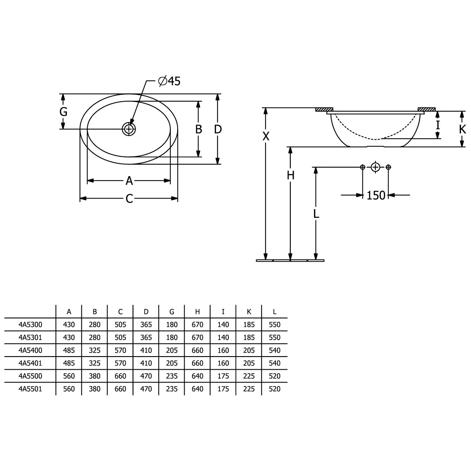 Villeroy & Boch Loop & Friends Unterbauwaschbecken oval 66 x 47 cm, mit Überlauf