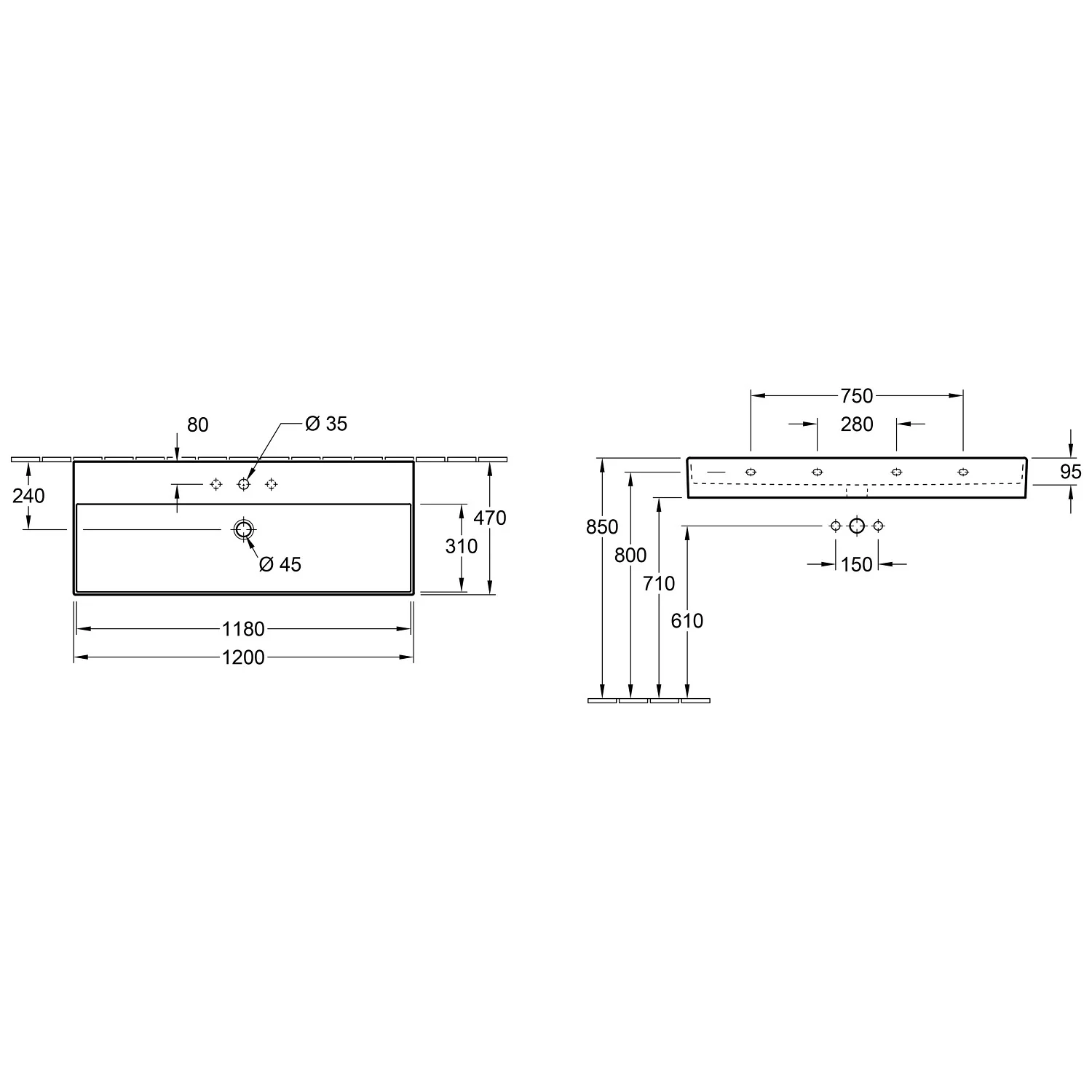 Villeroy & Boch Memento 2.0 Waschtisch 120 cm mit 1 Hahnloch, ohne Überlauf