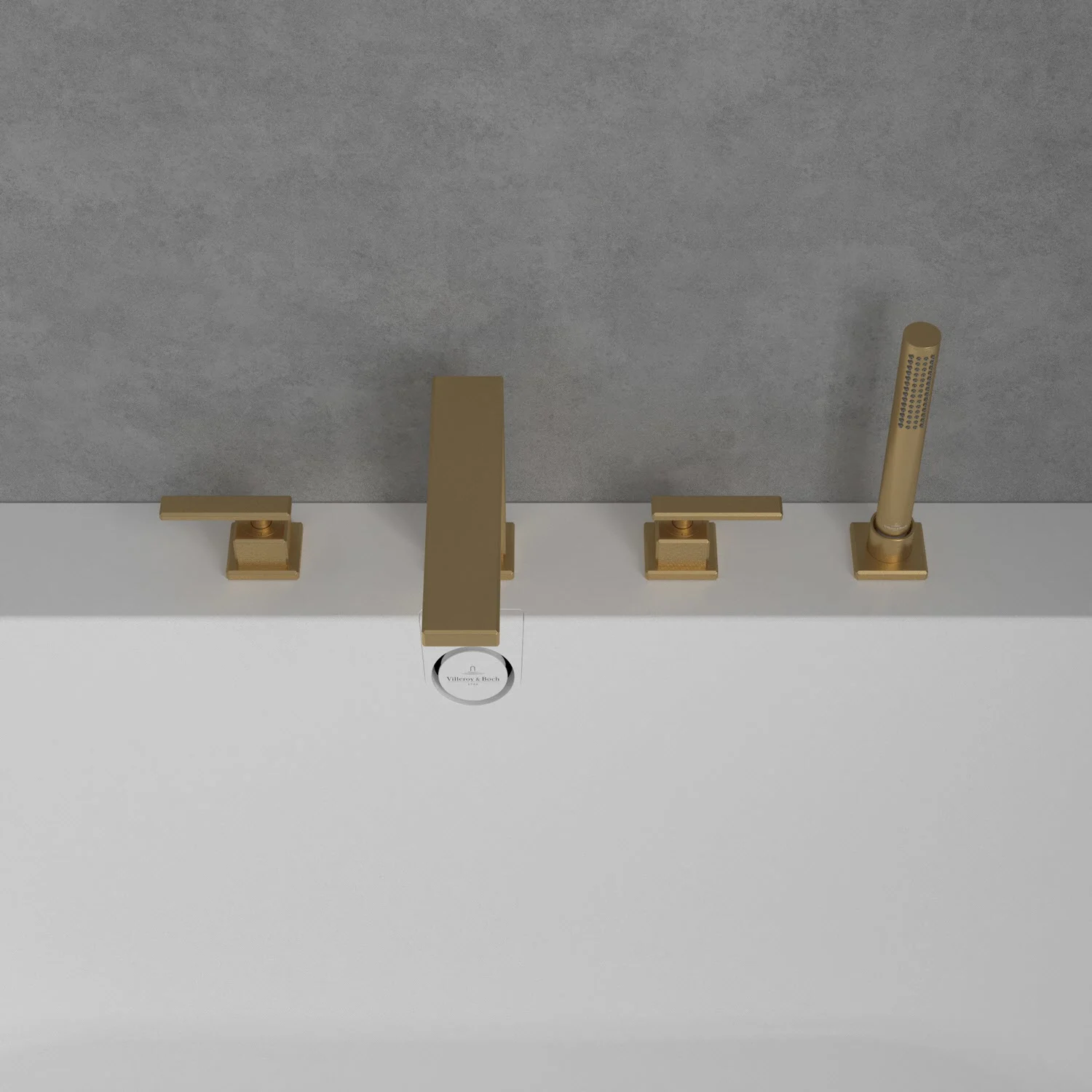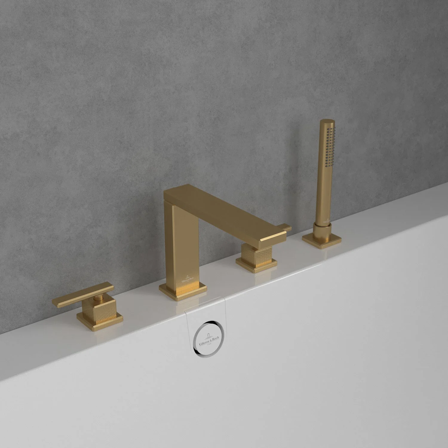 Einzigartige Produktqualität, die auf Jahrhunderten handwerklicher Erfahrung beruht und Design, das Inspiration aus mehr als 275 Jahren Markengeschichte schöpft: Im luxuriösen Design dieser Vierloch-Badewannenrandarmatur Mettlach verbindet sich alles, was Villeroy & Boch ausmacht. Denn mit der Integration des ikonischen Musters der weltberühmten Fliese "MettlacherPlatte" ist die Armatur eine unvergleichliche Kreation. Auch die Koordinaten der Mettlacher Abtei sind gekonnt verarbeitet. Die Armatur wird direkt am Badewannenrand montiert und ist aus hochwertigem Messing gefertigt. Über die beiden Hebel wird Wassermenge und -temperatur gesteuert. Der Strahl fühlt sich dank des Untermischens von Luft besonders voll und wohltuend an. Als vierte Komponente dient die passende Handbrause. Ohne Zweifel ist diese Armatur ist die ideale Wahl für ein ganz besonderes Badezimmer!