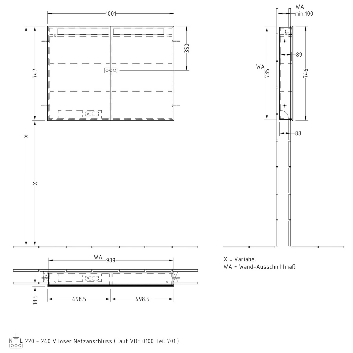 - Benötigte Nischenbreite: Breite: 98,9 cm +/- 3 mm Höhe: 73,5 cm +/- 3 mm (beziehen sich auf fertig verputztes Mauerwerk)