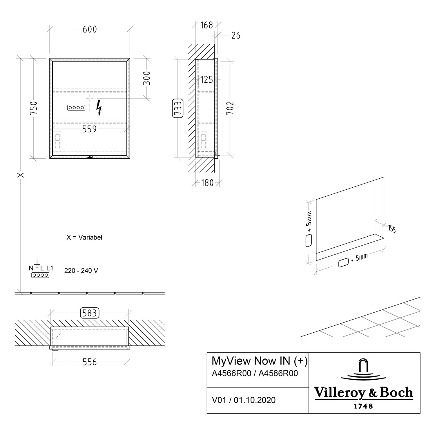 Villeroy & Boch My View Now Einbau-Spiegelschrank 60 cm, 1 Tür Anschlag rechts, mit Sensordimmer