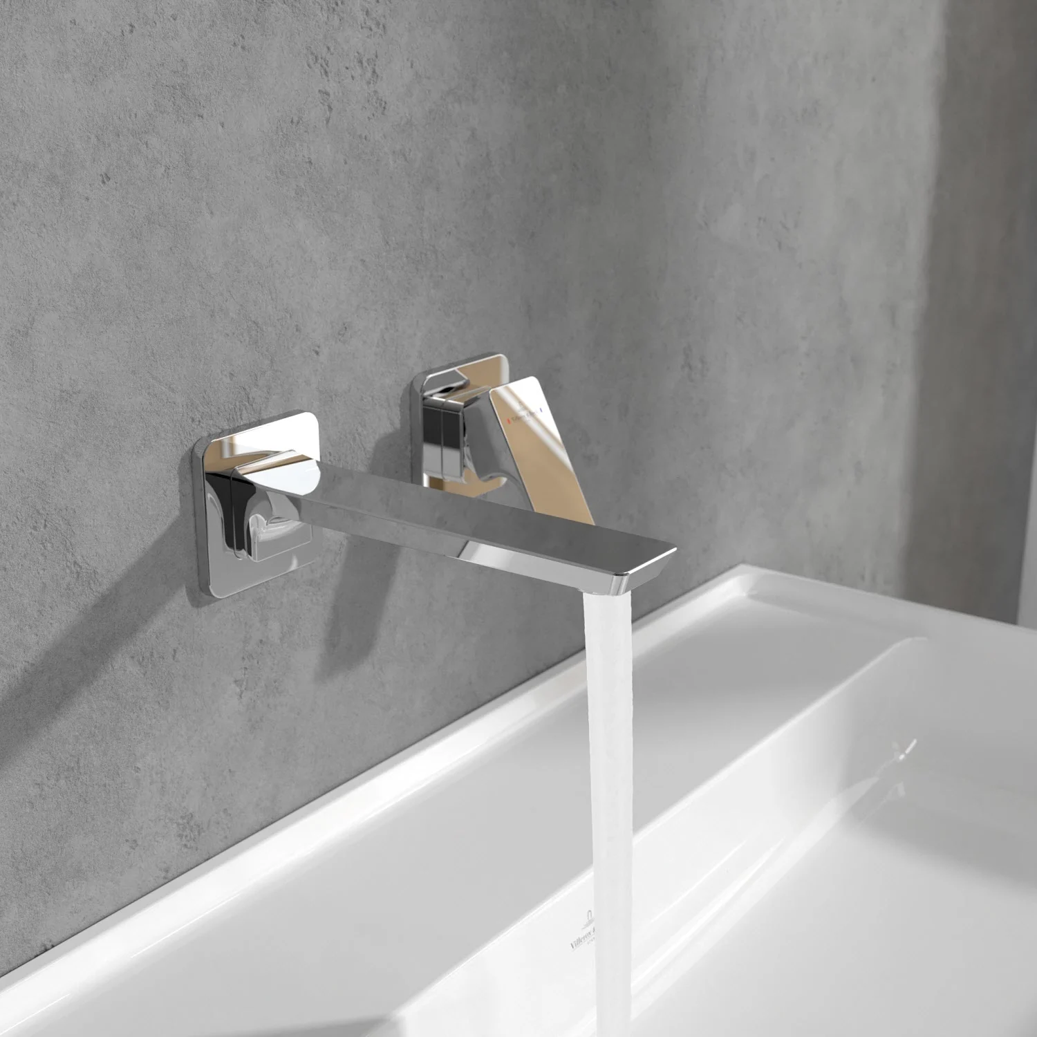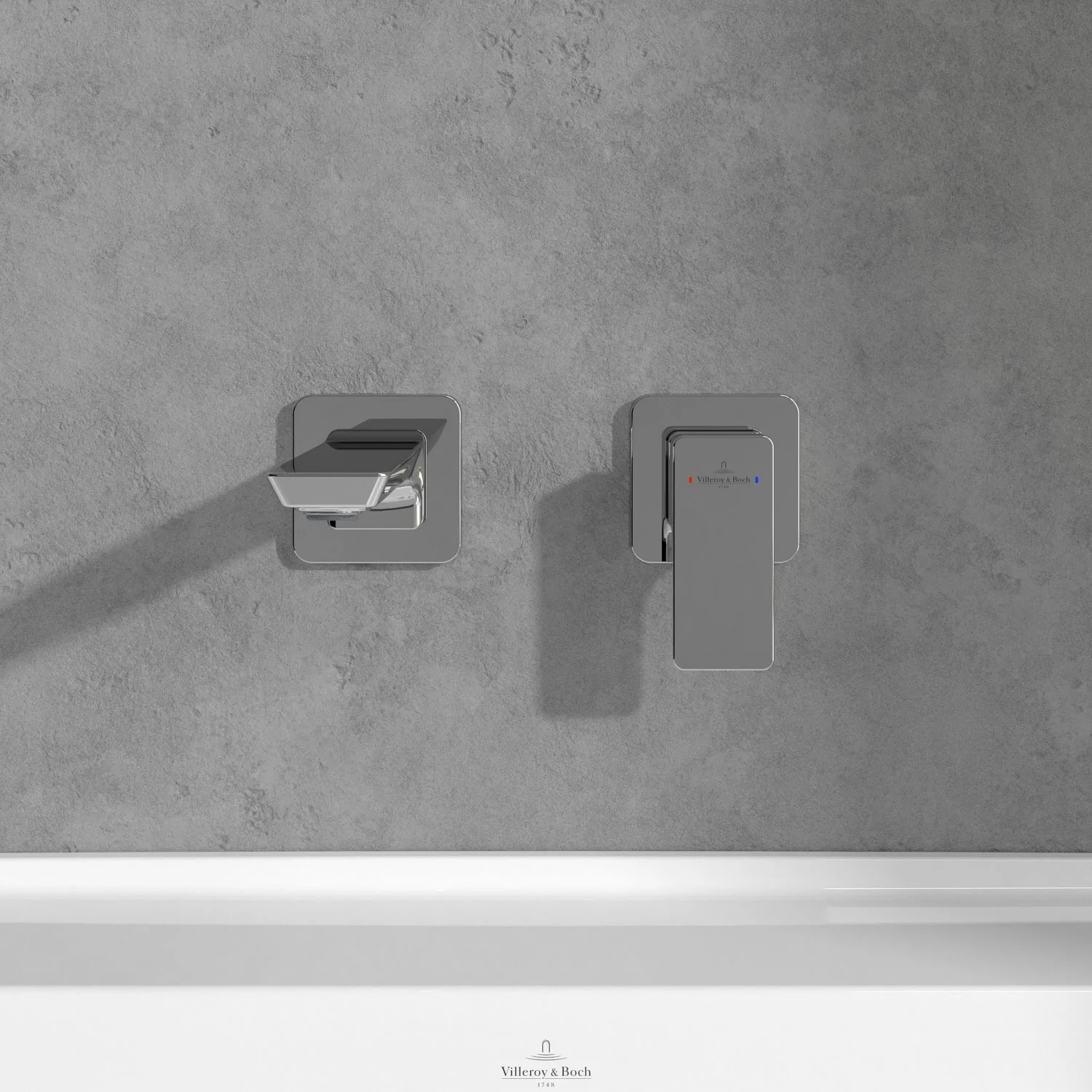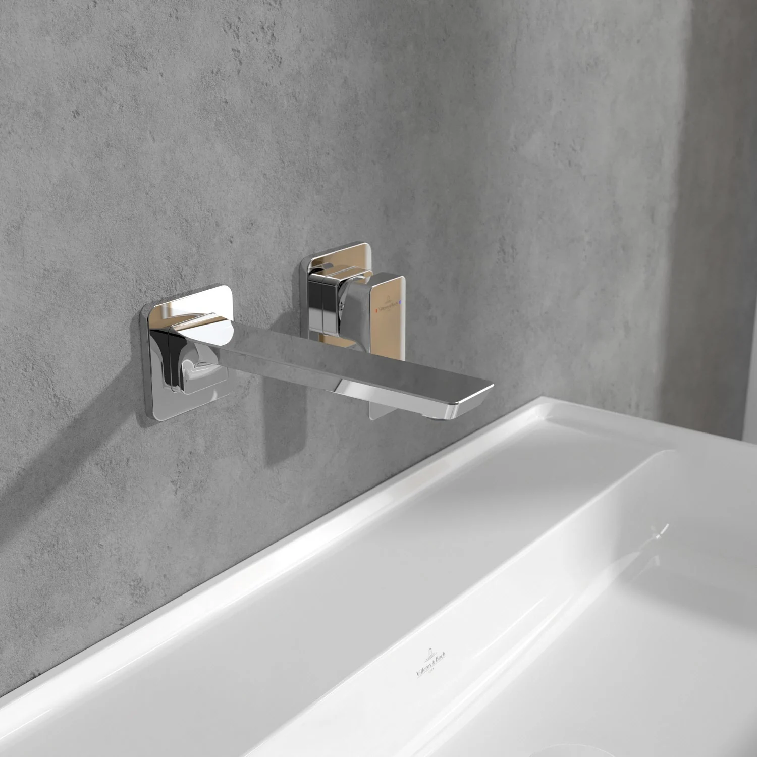 Optisch die ideale Wahl zur Gestaltung eines zeitlosen Waschplatzes: die wandmontierte Einhebel-Waschtischarmatur der Subway 3.0 Kollektion von Villeroy & Boch. Sie besteht aus zwei Komponenten: einem modern designten, eckigen Auslauf und einem passenden Bedienhebel, der besonders gut in der Hand liegt. Der Auslauf verfügt über einen einstellbaren Strahlregler, der dank des Untermischens von Luft ins Wasser für einen vollen, weichen Wasserstrahl sorgt. Er ist speziell konzipiert und vermeidet zudem so Kalkablagerungen. Eventueller Belag kann einfach mit der Hand oder einem weichen Tuch entfernt werden. Hochwertiger Messing lässt die Armatur lange strahlen!