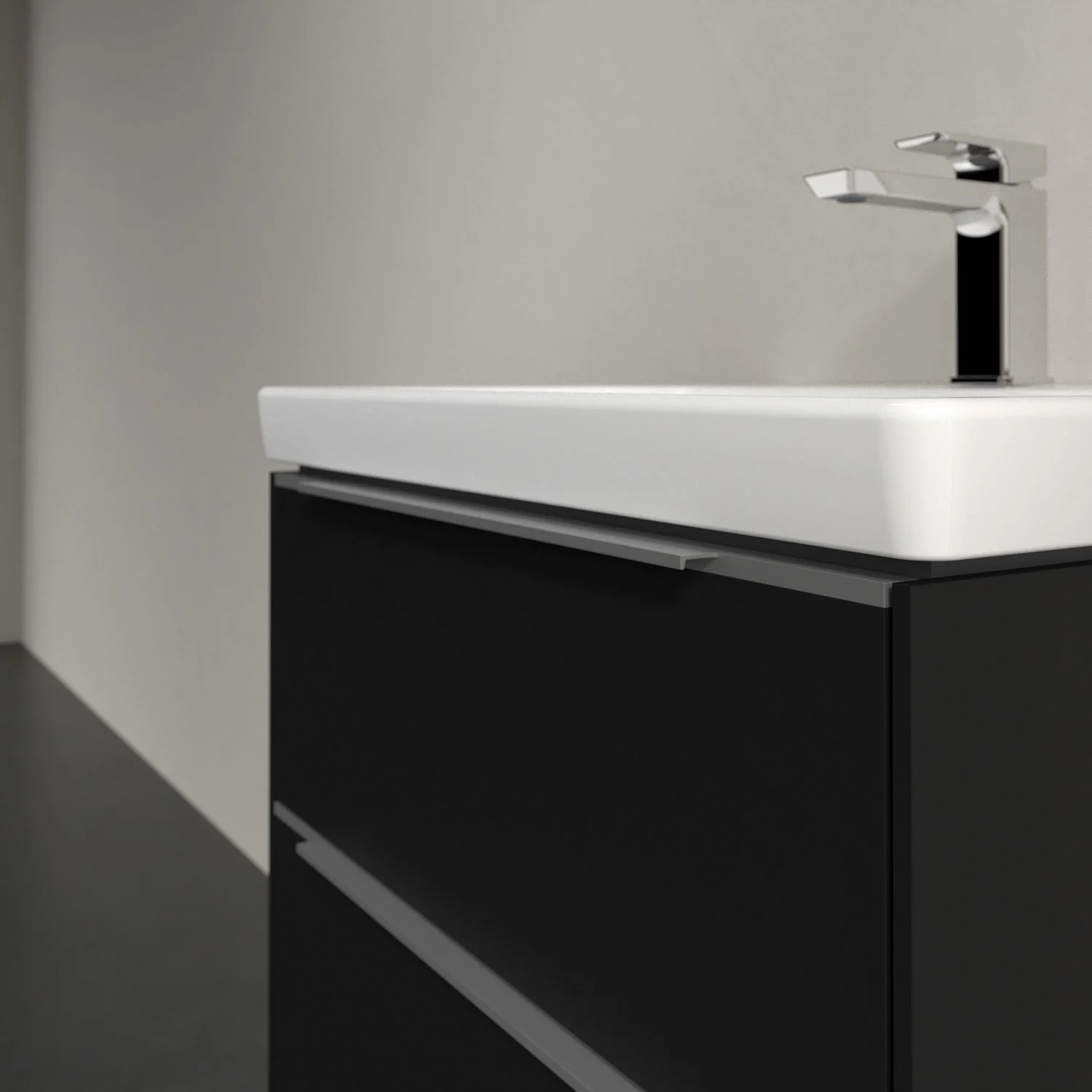 Der Waschtischunterschrank der Kollektion Subway 3.0 von Villeroy & Boch besticht durch gradliniges, zeitloses Design und großzügigen Stauraum. Front und Korpus sind mit einer hochwertigen Direktbeschichtung oder Lackierung, deren Anti-Fingerprint-Oberfläche unschönen Fingerabdrücken vorbeugt, versehen. Zwei voll ausziehbare Schubladen mit rutschhemmenden Böden, Selbsteinzug-Funktion sowie einer integrierten kleinen Accessory-Box bieten extra viel Platz für Pflege- und Hygieneartikel. Die dezente Griffleiste sorgt für einfache Handhabung und bildet einen besonderen Design-Akzent.