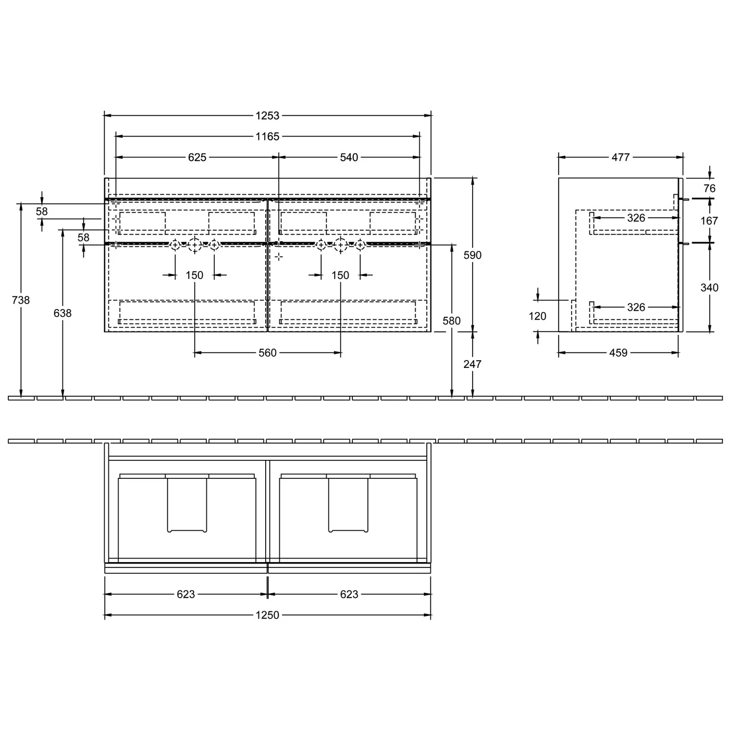 Villeroy & Boch Venticello Waschtischunterschrank 125,3 x 59 cm, 4 Auszüge