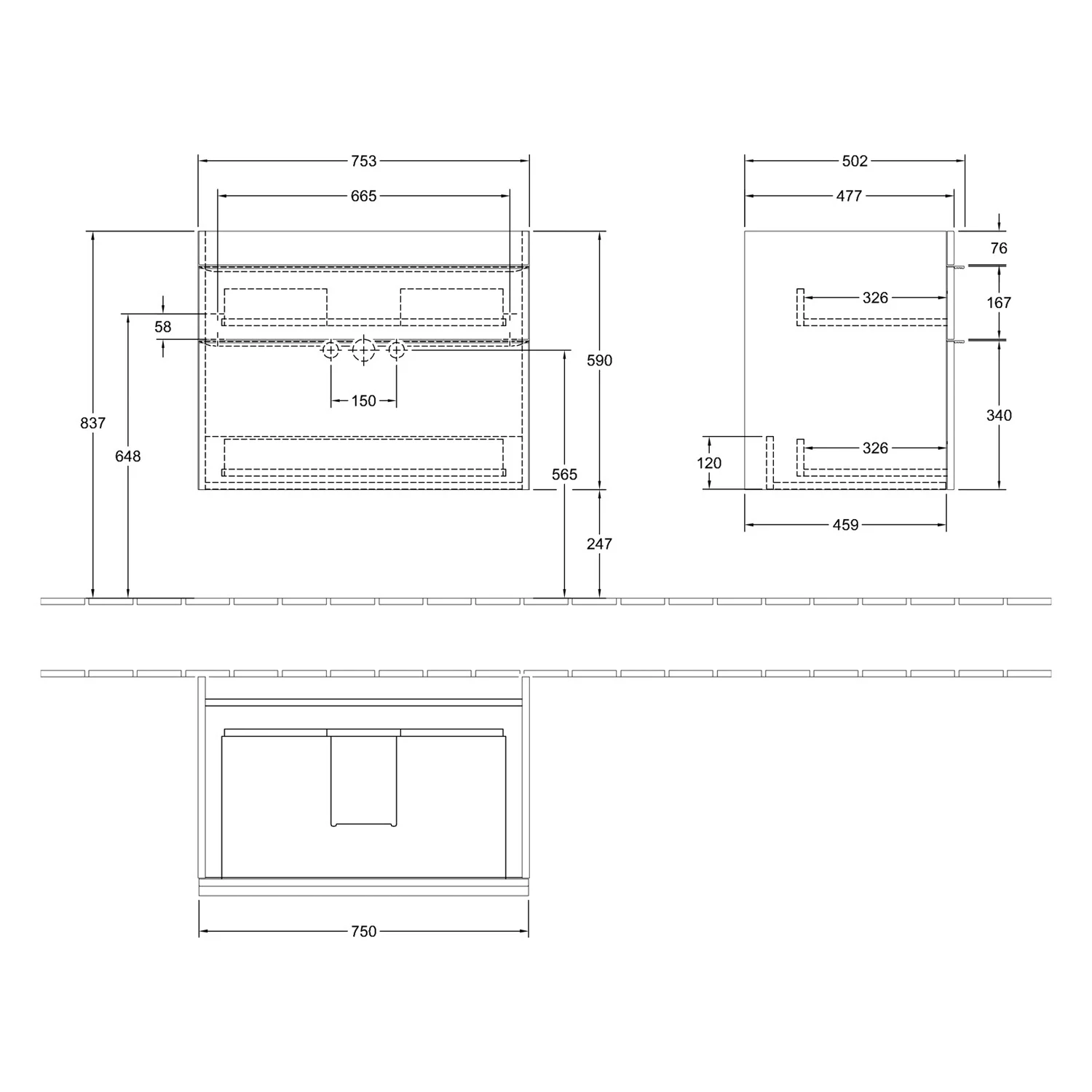 Villeroy & Boch Venticello Waschtischunterschrank 75,3 x 59 cm, 2 Auszüge