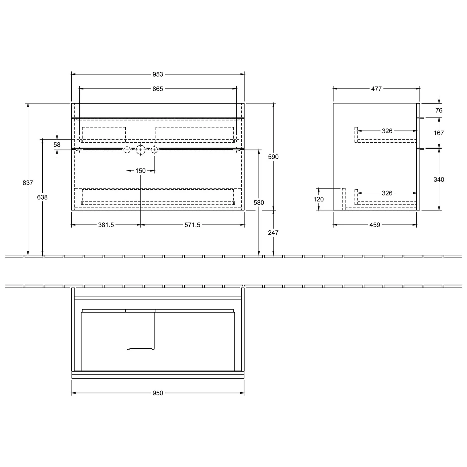 Villeroy & Boch Venticello Waschtischunterschrank 95,3 x 59 cm, 2 Auszüge, für Waschbecken links