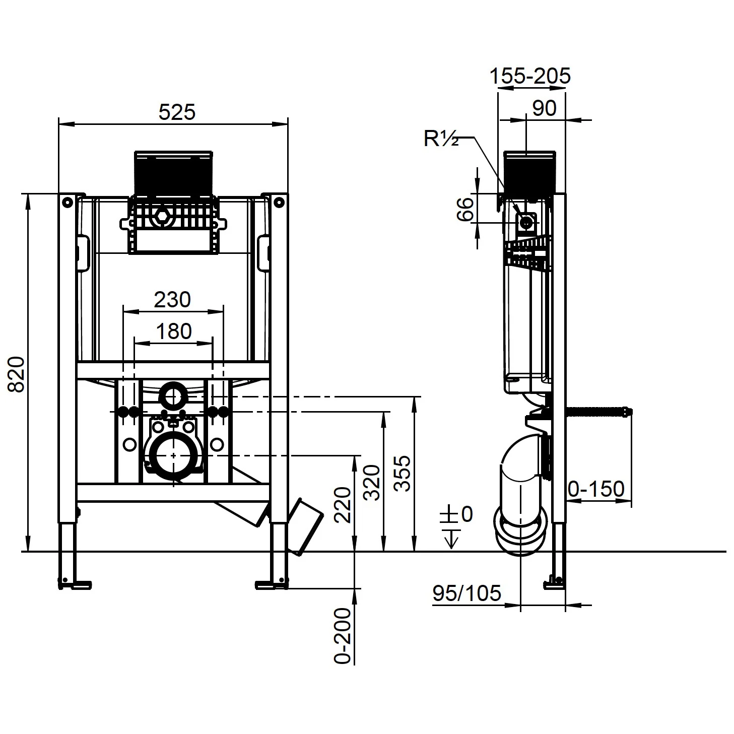 - Verstellbereich Füße von Rohfußboden bis OKFFB: 0-20 cm