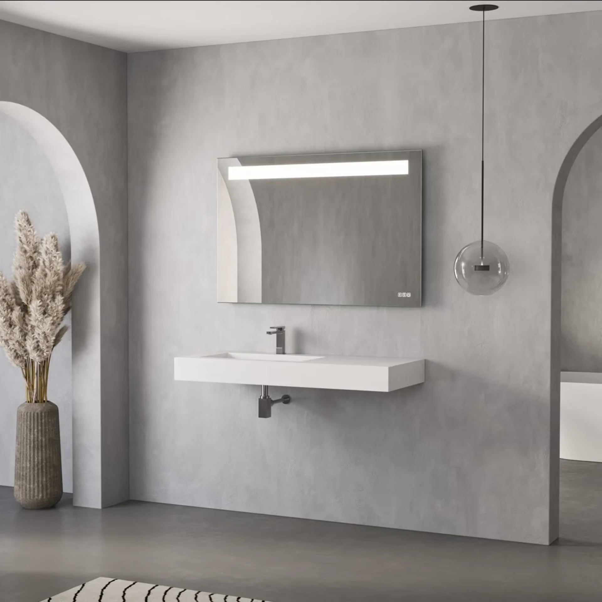 Betontapeten sind die perfekte Wahl für geradlinige, moderne Badezimmer im Bauhaus- oder Industrial-Stil. Grautöne und klare Formen sorgen für eine nüchterne, kantige Ästhetik, die sich mit dunklen Elementen und weißen Decken stilvoll kombinieren lässt. Sie schaffen ein modernes Design, das gleichzeitig funktional und minimalistisch wirkt.
