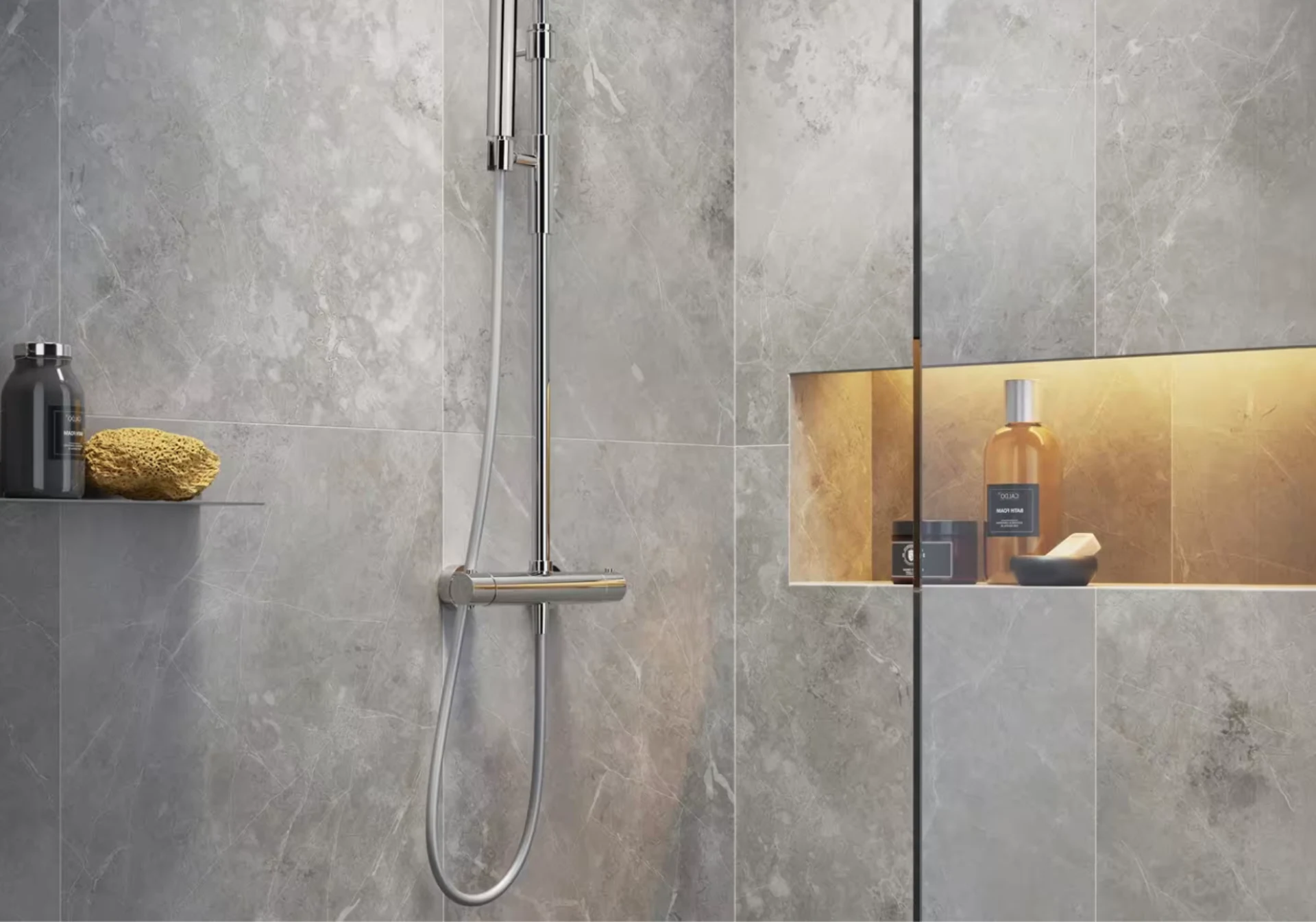 Entscheiden Sie sich für eine begehbare Dusche, fehlt durch den fehlenden Rand der Duschwanne häufig Ablagefläche für Shampoo und Duschgel. Natürlich könnten Sie diese Dinge auf den Boden der Dusche stellen. So wirklich schön sieht das allerdings nicht aus. Zudem müssen sie sich auch ständig runterbücken. Bei begehbaren Duschen eignen sich daher vor allem Nischen in der Duschwand, eventuell sogar beleuchtet, als optimaler Stauraum für die Duschutensilien. So haben Sie auf Augenhöhe die notwendigen Dinge griffbereit und haben ein perfektes Akzentlicht.
