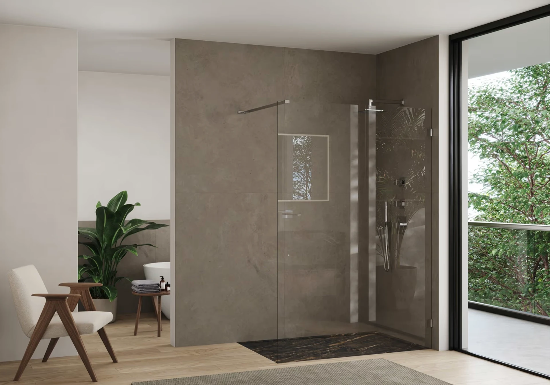 Die Walk-In-Dusche ist eine elegante und praktische Variante der begehbaren Dusche. Charakteristisch für diese Bauweise ist eine feste Duschtrennwand, die den Duschbereich optisch abgrenzt, ohne Türen oder bewegliche Elemente zu benötigen. Dies verleiht dem Bad eine moderne und offene Optik.