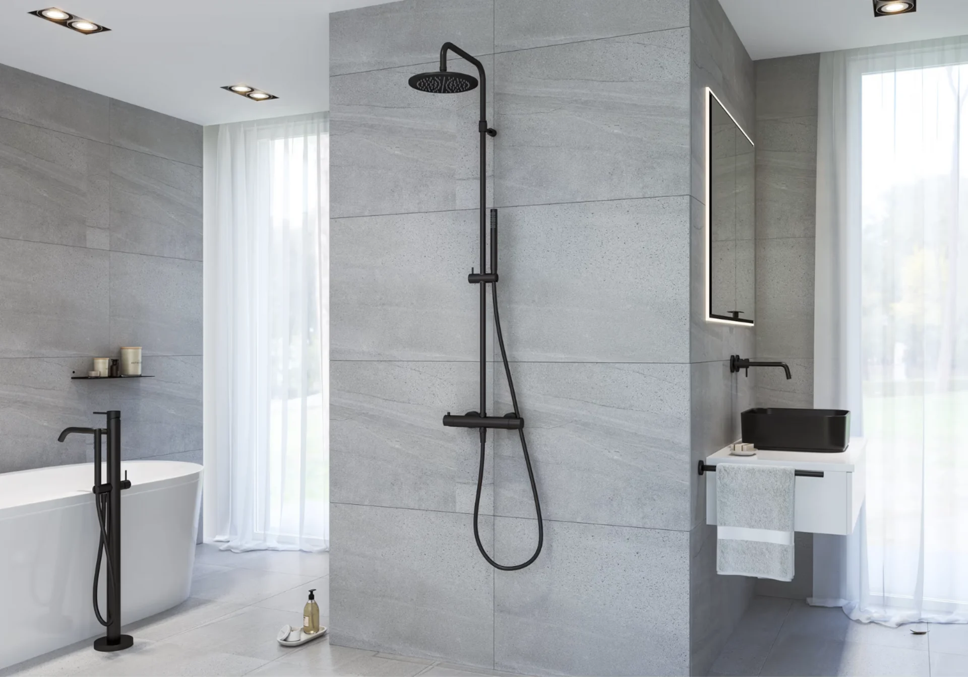 Damit das Wasser in einer bodengleichen Dusche problemlos abfließen kann, ist ein Gefälle von mindestens 2 % nötig. Ein passendes Ablaufelement, wie eine Duschrinne oder ein Punktablauf, sorgt dafür, dass keine Überschwemmung entsteht.